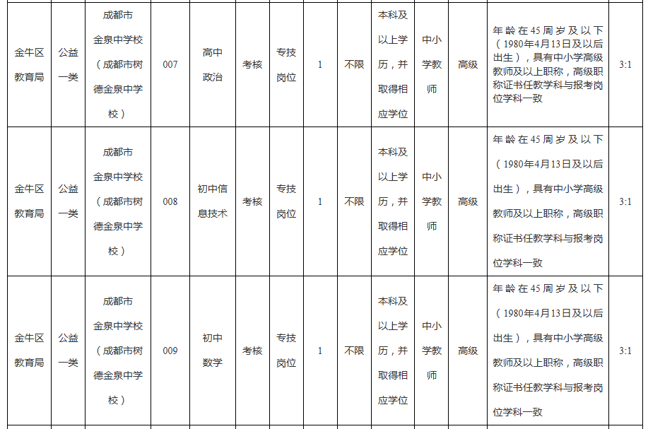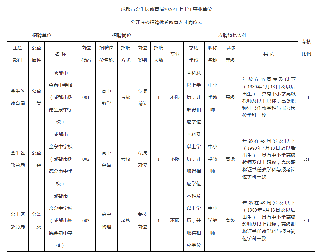 成都市金牛区教育局所属1家事业单位拟面向社会公开考核招聘优秀教育人才10名。本次公开考核招聘进入事业单位的为编制内正式工作人员。